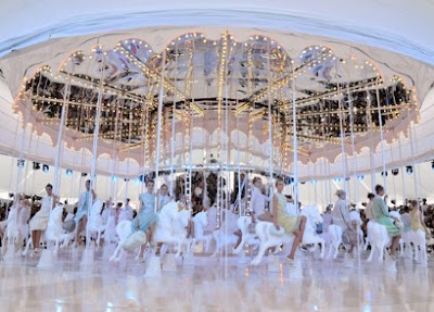 The carousel themse used by Marc Jacobs for Louis Vuitton Spring/Summer 2012 at Paris Fashion Week is a-ma-zing. The backdrop enhances the clothing and makes the whole show so spectacular and visually stimulating.